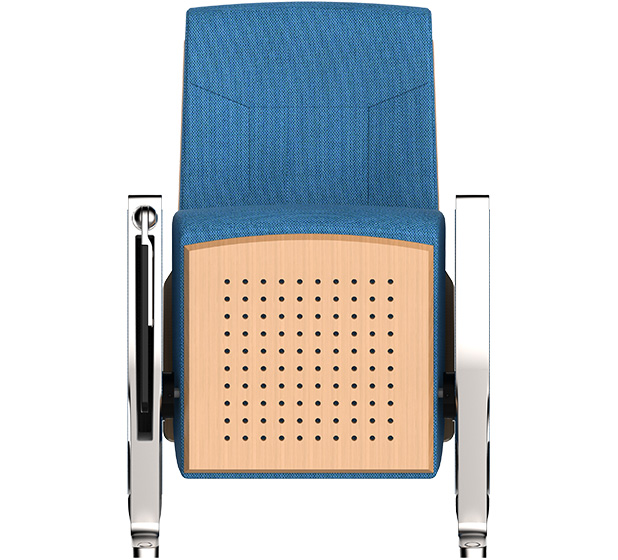 3.在保證觀(guān)眾舒適度的前提下,背墊高不超過(guò)1015mm,增加椅背板的聲反射面積,改善座椅的吸聲;座底板根據需要打吸音孔,使座椅的吸聲量在不同的上座率盡可能保持一致。