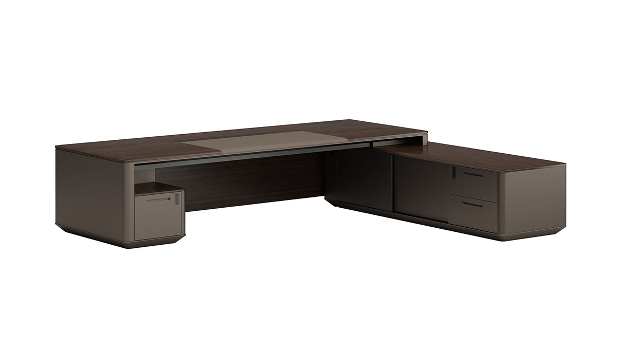 維登系列名取自經(jīng)典奢侈品牌,時(shí)尚界品位和地位的象征—路易威登 (LV)。卓越品質(zhì),杰出創(chuàng )意和精湛工藝,LV 的三大特點(diǎn)在維登產(chǎn)品上得到完美體現:進(jìn)口直紋胡桃木皮搭配獨特的棕色金屬漆,款式造型時(shí)尚大氣,精湛的斜切邊工藝,再配上優(yōu)質(zhì)進(jìn)口五金配件,盡顯總裁辦公產(chǎn)品的高端和尊貴。